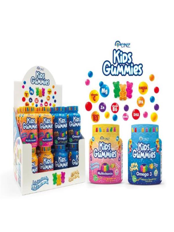 Dnz Kids Gummies Omega 3 Balık Yağı 12 Adet + Multivitamin 12 Adet Stant